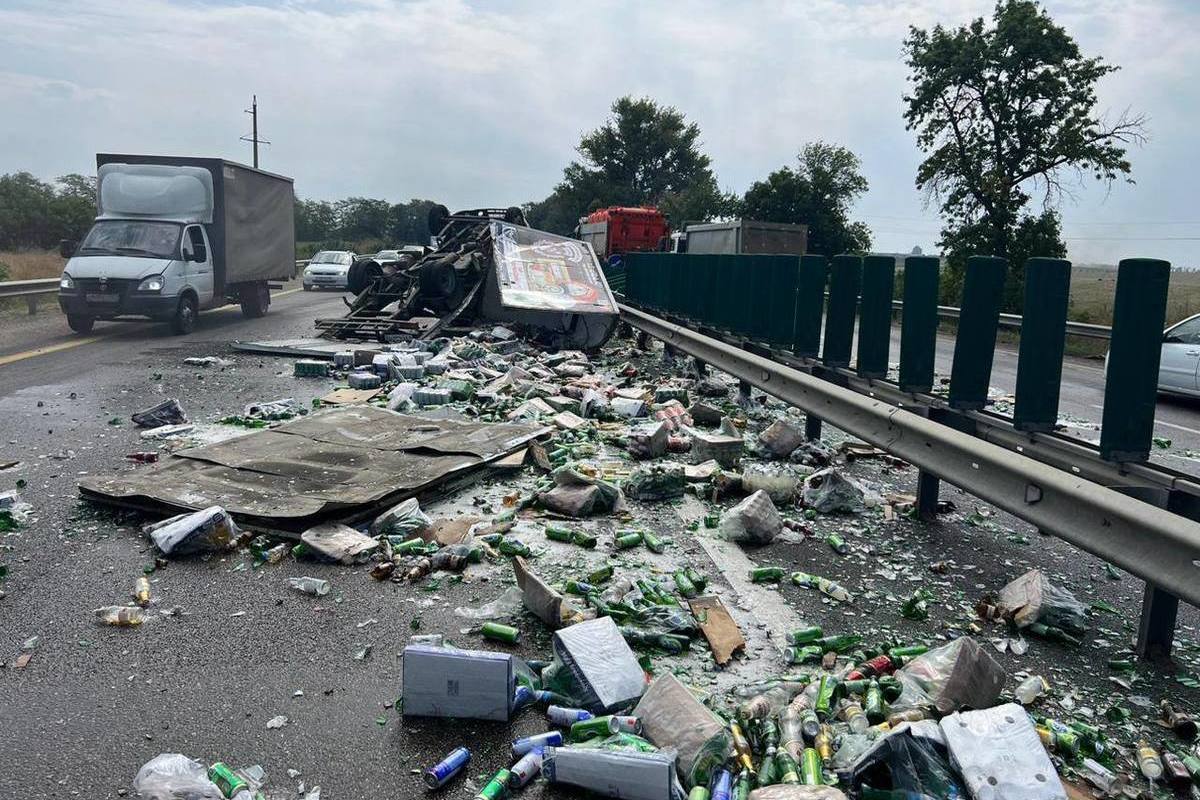 В Краснодарском крае, 23 августа, произошло ДТП. В результате аварии опрокинулся грузовик, перевозивший пиво.