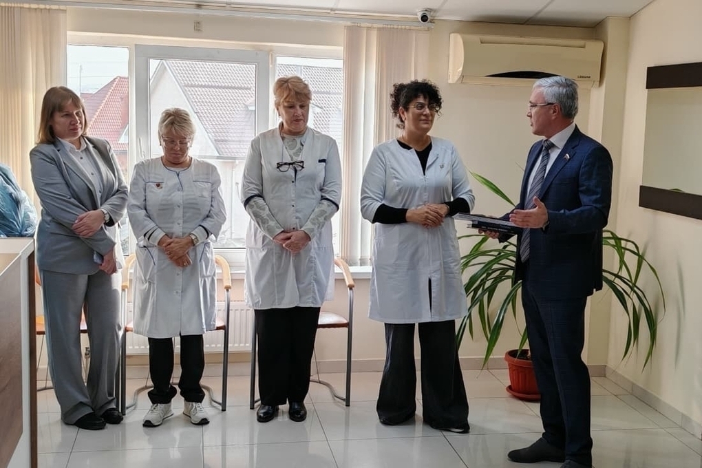 Депутат Госдумы Эдуард Кузнецов посетил городскую поликлинику № 13 Краснодара. Здесь парламентарий поздравил коллектив со 100-летним юбилеем медучреждения и вручил врачам благодарственные письма.