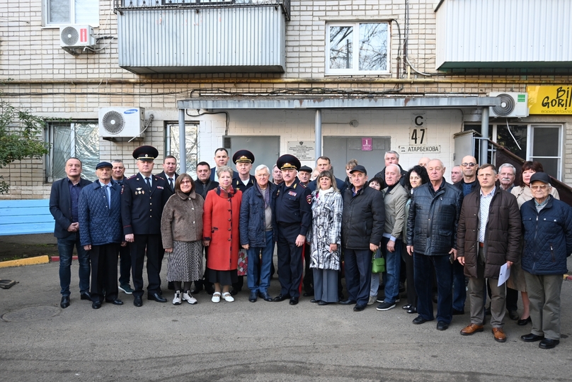 На фасаде дома по улице Атарбекова торжественно открыта мемориальная доска в память о подполковнике милиции в отставке Александре Сидоровиче Абакумове — Заслуженном сотруднике ОВД Кубани, экс-председателе городской организации ветеранов органов внутренних дел.